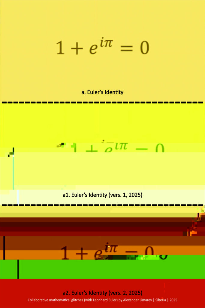 1.  a. Euler’s Identity; a1. Euler’s Identity (vers.1, 2025); a2. Euler’s Identity (vers.2, 2025) by Alexander Limarev | visual poetry, glitch art | 2025